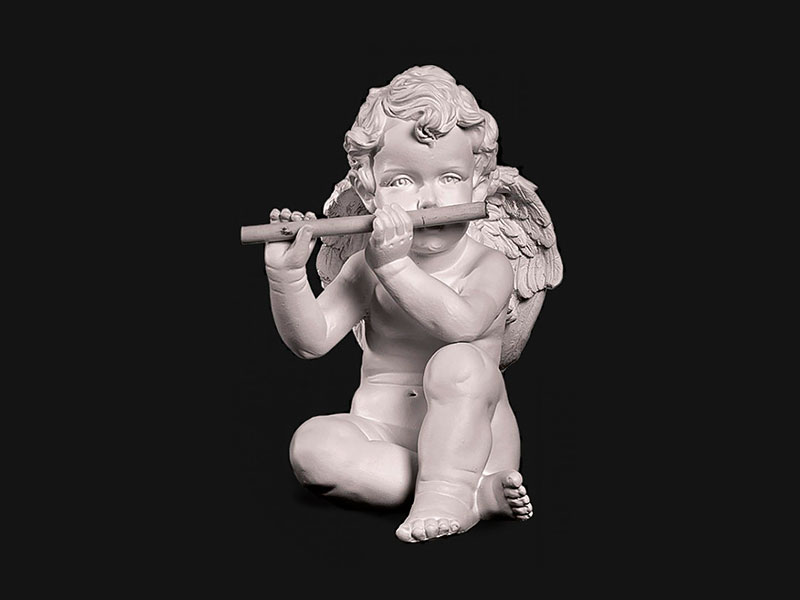 Миниатюрная скульптура “Ангел с флейтой” подходит для размещения в композиции как на взрослых, так и детских захоронений.