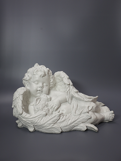 Скульптура “Спящий ангел” подходит для размещения на детском надгробии. Такой ангел выступает в качестве проводника, который после долгого пути в Божье царство сохраняет память о человеке.