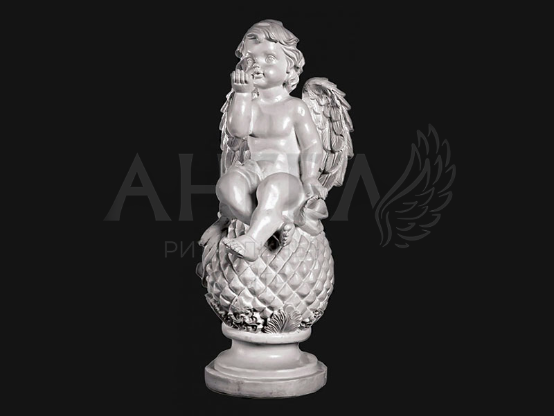 Скульптура “Сидящий ангел” может быть размещена на плите, возле памятника или в сочетании с другой скульптурой (например, колонной).