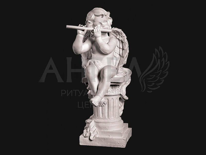 Скульптура “Ангел с флейтой, сидящий на колонне” отсылает нас к Библии, где человеческая душа ассоциируется с музыкальными инструментами, а музыка обозначает стремление к возвышенному и светлому.