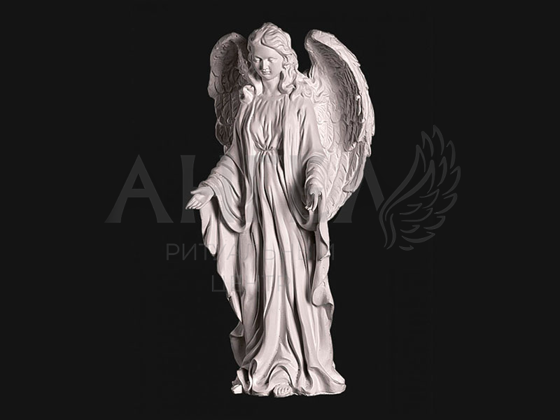 Скульптура “Ангел, простирающий ладони” изображает ангела, встречающего бессмертную душу, чтобы направить её в новый мир.