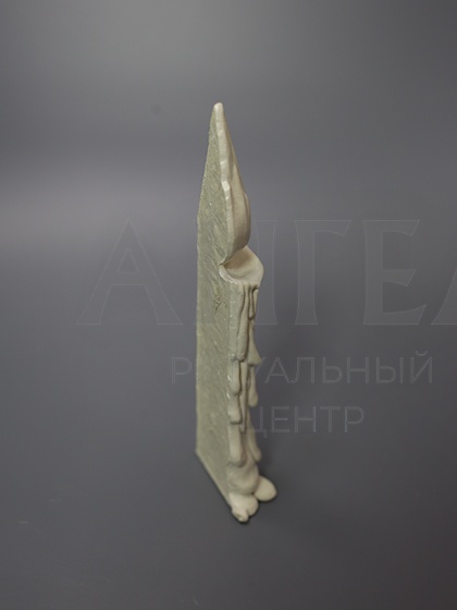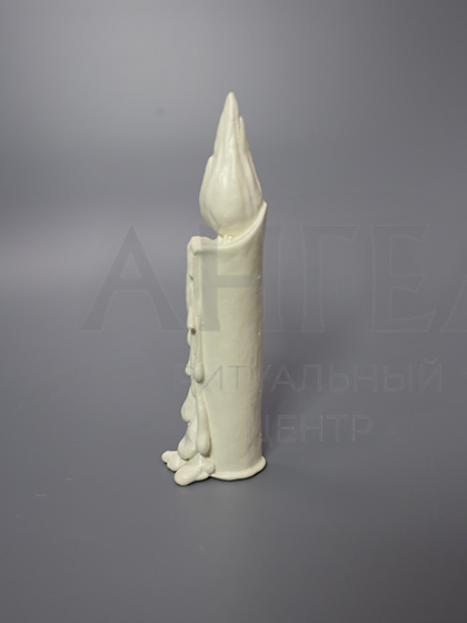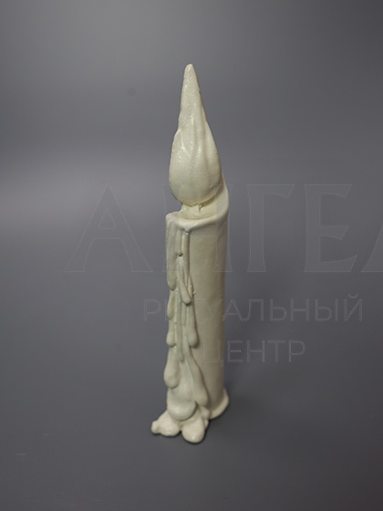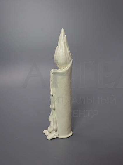 Скульптура в виде мраморной свечи символизирует пламя, которое нельзя погасить. Огонь веры, любви, памяти.